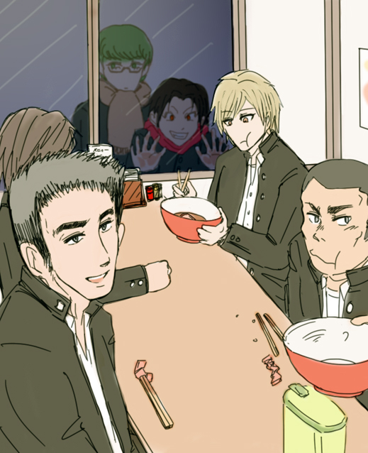秀徳3年たち。練習後にみんなでラーメン。木村はラーメンのスープ全部飲む派だと思う。